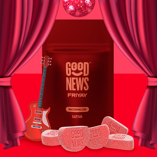 Friyay Watermelon Sativa Gummies Designed to make any day feel like it’s the weekend and bring party vibes that are on 10 (mg). 10mg per gummy/100mg per pack Good News is a line of easy-to-enjoy cannabis products with formulas designed to turn any moment into a great occasion. Why? Because we believe life’s best moments can be even better when cannabis is in the mix.